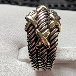 David Yurman Sterling Silver 14k Gold Triple Row 4 X Cable Ring size 7.5