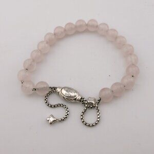 David Yurman Sterling Silver 8mm Rose Quartz Spiritual Bead Beaded Pull Bracelet