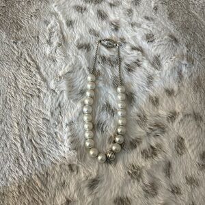 David Yurman 925 Sterling Silver 8 MM pearl adjustable length from 6 inches to 9 inches slider clasp bracelet.