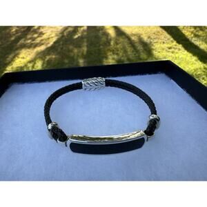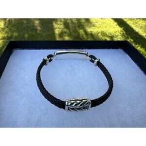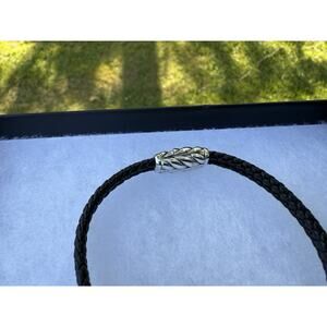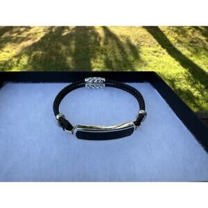 David Yurman Sterling Silver .925 Onyx Stone Bar Station Leather Bracelet L $595