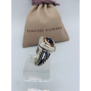 David Yurman Sterling Silver Albion Ring 11mm Morganite and Diamonds Size 9