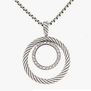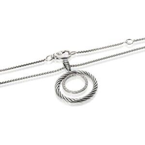 David Yurman Sterling Silver Cable Circle Pendant Necklace With Diamonds 16"-17"