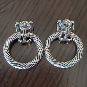💎✨🤍 David Yurman Sterling Silver Cable Hoop Drop Earrings – 1.5in