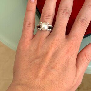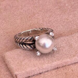 David Yurman Sterling Silver Cable Ring with Pearl & Diamonds – SIZE 7