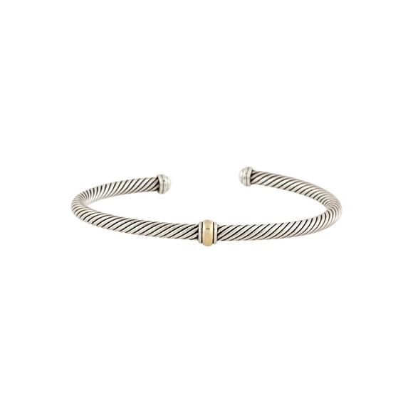 David Yurman Sterling Silver Classic Cable Gold Station Cuff Bracelet
