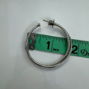 Elegant and timeless, these authentic David Yurman hoop earrings feature the iconic twisted cable design in sterling silver. Lightweight and comfortable for everyday wear, they fasten securely with post backs. A classic signature piece from David Yurman.
