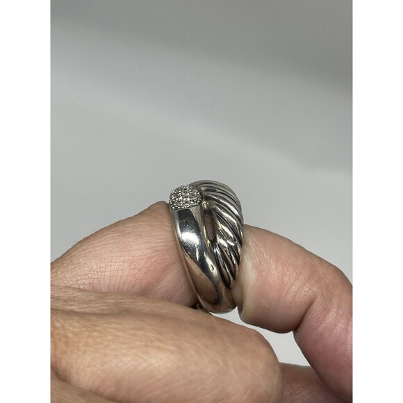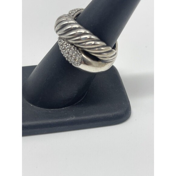 David Yurman Sterling Silver Diamond Cable Crossover Wide Ring Sz 7.25