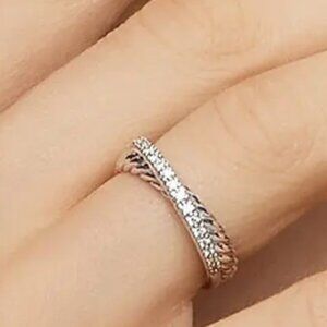 David Yurman Sterling Silver Diamond Crossover Ring 5mm – Size 7 (Like New)