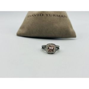 David Yurman Sterling Silver Morganite & Diamond Petite Albion Ring Size 6