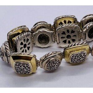 David Yurman Sterling Silver and 18k Yellow Gold Albion Station Diamond Bracelet