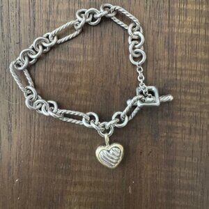 David Yurman Sterling Sliver with 18K Yellow gold heart charm bracelet
