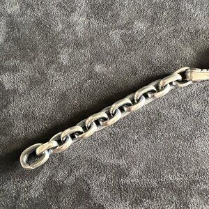 1) Recently cleaned and polished; exhibits minor surface scratches on the sterling silver elements (e.g. links, clasp, hallmark, ID station, etc.)
