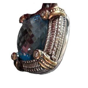 David Yurman Style, Gold Sterling and Blue Topaz & Diamond Pendant