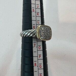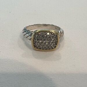 David Yurman Two-Tone Yellow Gold Diamond Cable Noblesse Cocktail Ring Silver
