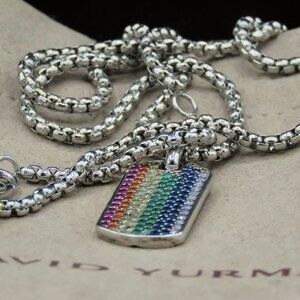 David Yurman Unisex 27mm Streamline Rainbow Dog Tag Pendant w/ 22" DY chain