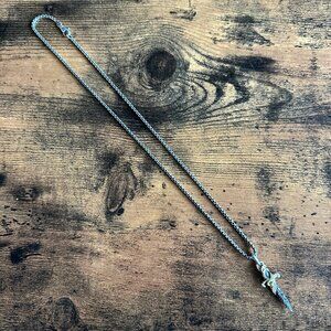 David Yurman Waves Dagger w/ 18K Gold & Black Diamonds Necklace - 2.7mm - 22"