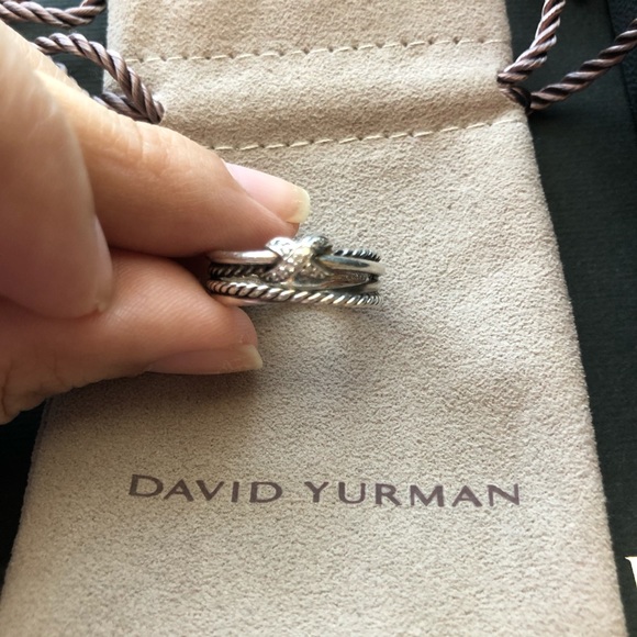 Gently worn, could use a good cleaning. Great DY piece to have, I just don’t wear it much anymore. Size 5.5. Comes with DY box, dust bag, gift bag, polishing cloth and even the receipt holder ( receipt not included ). Real diamonds on the X. Retails for $375. Great for a Valentines Day gift!