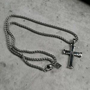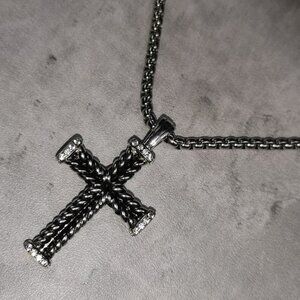 Status: New Material: Black diamond inlay Stamp: ? D.Y. 925 Total weight: 29.3g Chain length: 508mm/20 inches Chain width: 2.7mm Cross size: 42mm*30mm