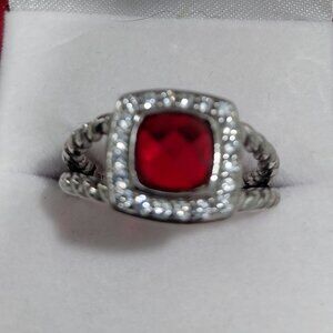 Authentic David Yurman petite Albion garnet with diamonds surrounding ring size 8, DY bag included