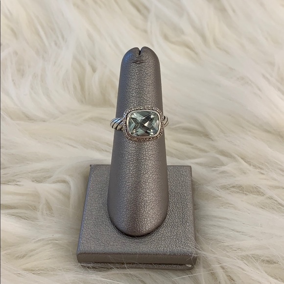 Sterling silver David Yurman ring. Prasiolite center surrounded by diamonds
