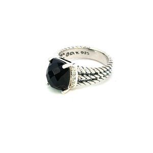 David Yurman Onyx Diamond Ring Size 5.5 Sterling Silver Estate DY653