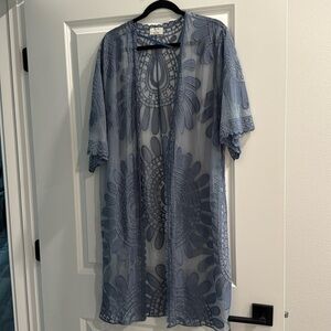 David and Young Blue Floral Lace Kimono Duster Womens One Size Boho Sheer