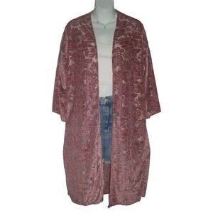 David and Young Duster Pink Crushed Velvet Floral Boho Whimsigoth Festival Beach