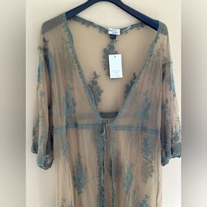 David and Young sheer green lace bathing suit coverup/or wear with a pair of cute jeans! Vintage look! NWT