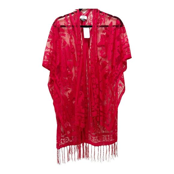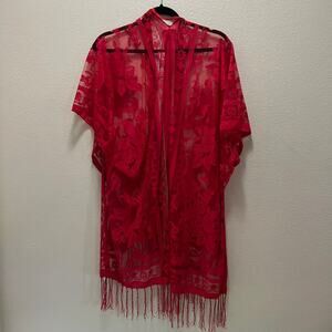 David and Young Red Floral Lace Fringe Kimono Burgundy Style ATO4050 OS NWT