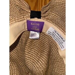 Keywords: David and Young, floppy sun hat, wide brim hat, packable hat, straw look hat, tan beige hat, women's sun hat, beach hat, vacation hat, travel hat, summer hat, spring hat, pool hat, sun protection hat, casual accessory