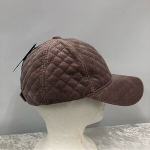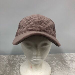 One size fits most, adjustable strap, quilted, lightweight made of 100% polyester. This is a new item but it did come with the a flaw. There is a stain on the inside of the hat. It does not affect the look of it. I have provided a picture, which is the last image that shows the stain. If you have any questions please feel free to reach out to me thank you.