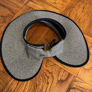 Perfect for a wide range of occasions including travel, casual outings, workwear, and more, this roll-up sun visor is a versatile accessory that can be worn in any season. Its designer-inspired theme and festival, beach, and holiday vibes make it a great addition to any wardrobe. It is brand new with tags and is sure to be a conversation starter wherever you go.