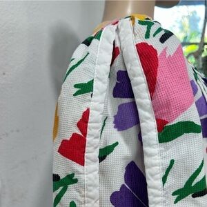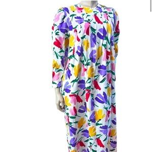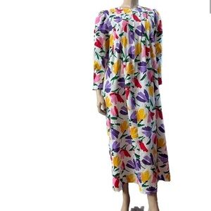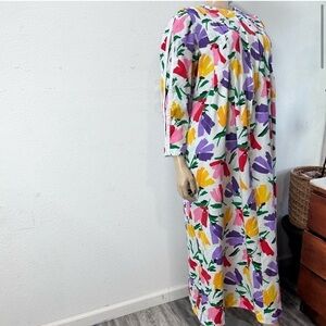 Vintage David Brown California Floral Printed Maxi Caftan Gown Size Small Has an area with scratched up looking threads and some light fuzziness. White with floral design Zip Front closure Relaxed and comfortable fit , maternity