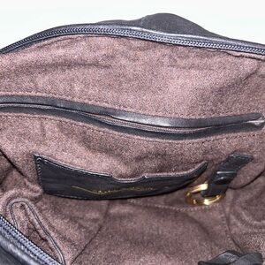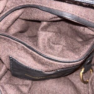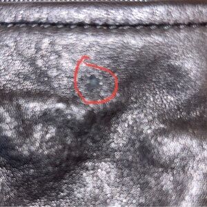 Super soft. I believe this purse is leather as it feels like leather however, I cannot find the material tag so I cannot guarantee it is. Either way, it’s a fabulous purse that is super comfortable on the shoulder. It has a place for keys and has a mirror attached. All zippers are in perfect working condition. Please see last photo which shows the only flaw I can see. It is not easily seen but I was inspecting the purse heavily.