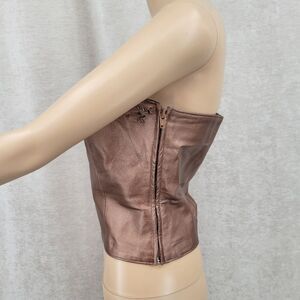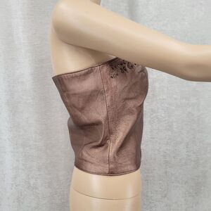 David Benjamin Leather Corset Tube Strapless Top Beading Metallic Bronze Copper