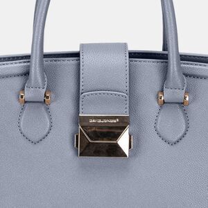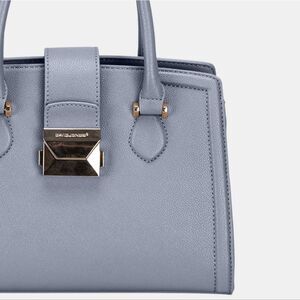 David Jones PU Leather Handbag Elegant Soft Blu Shiny Buckle Medium Square Purse