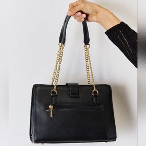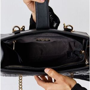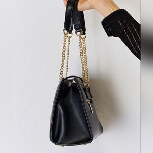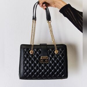 David Jones USA Quilted PU Leather Elegant Black Handbag w Gold Chain