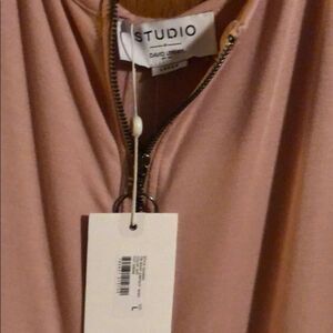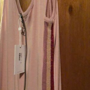 Design details: scoop neck, contrast stripes, drawstring waistband Zipper closure