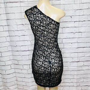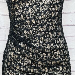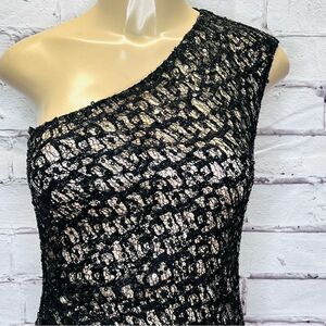 one shoulder sequin dress by David Meister. Lightweight and lined. Measurements are flat and approximate