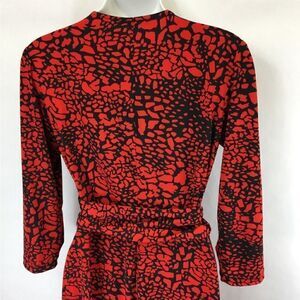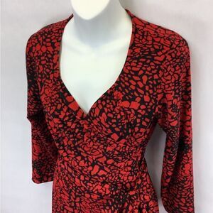 David Meister Red/Black Animal Print 3/4 Sleeves Wrap Dress