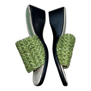 David Tate Womens Slip On Woven Strap Square Toe Wedge Heel Sandals Green Size 7