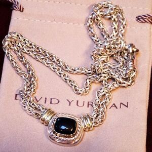 DOUBLE WHEAT CHAIN BLACK ONYX 925 585 GOLD NECKLACE