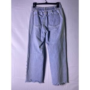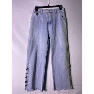 Davida Light Wash Wide Leg Cut-Off Buttoned Ankle Cropped Jeans Women's Medium