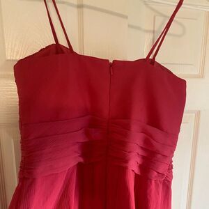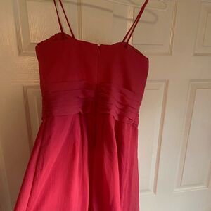 David’s Bridal 10 style F14847 bright pink crinkle chiffon midi dress