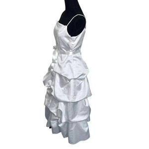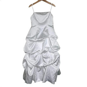 David's Bridal 12+ white satin draped spaghetti strap flowergirl communion dress