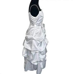 David's Bridal 12+ white satin fully draped spaghetti strap dress