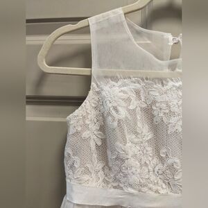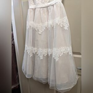 EUC: Worn once for a wedding. Charming ivory dress with lace accents. Perfect for weddings, formal events. Elegant and timeless design.