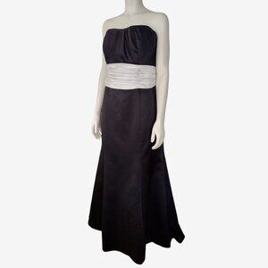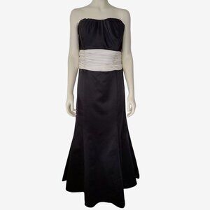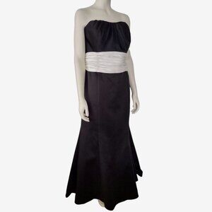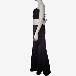 David's Bridal Black Ivory Satin Strapless Back Bow Trumpet Hem Gown 16