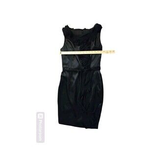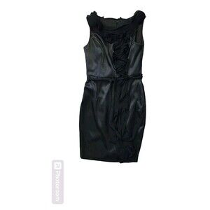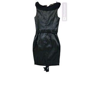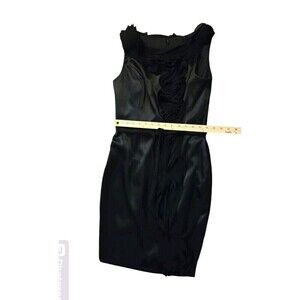 David's Bridal Black Satin Chiffon Size 4 Midi Whimsi Goth Witchy HOCO Ren Faire