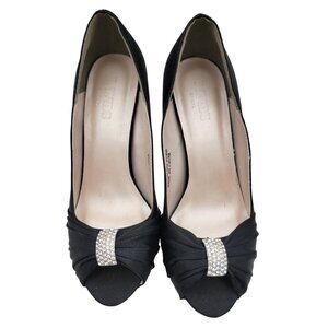 Davids Bridal Black Satin Peep Toe Heels With Rhinestone Accent Size 7.5